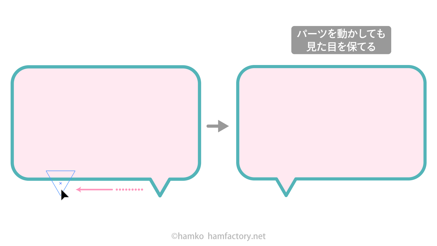 🗨️ ふきだし口のパーツはパス上をすいすい移動できる