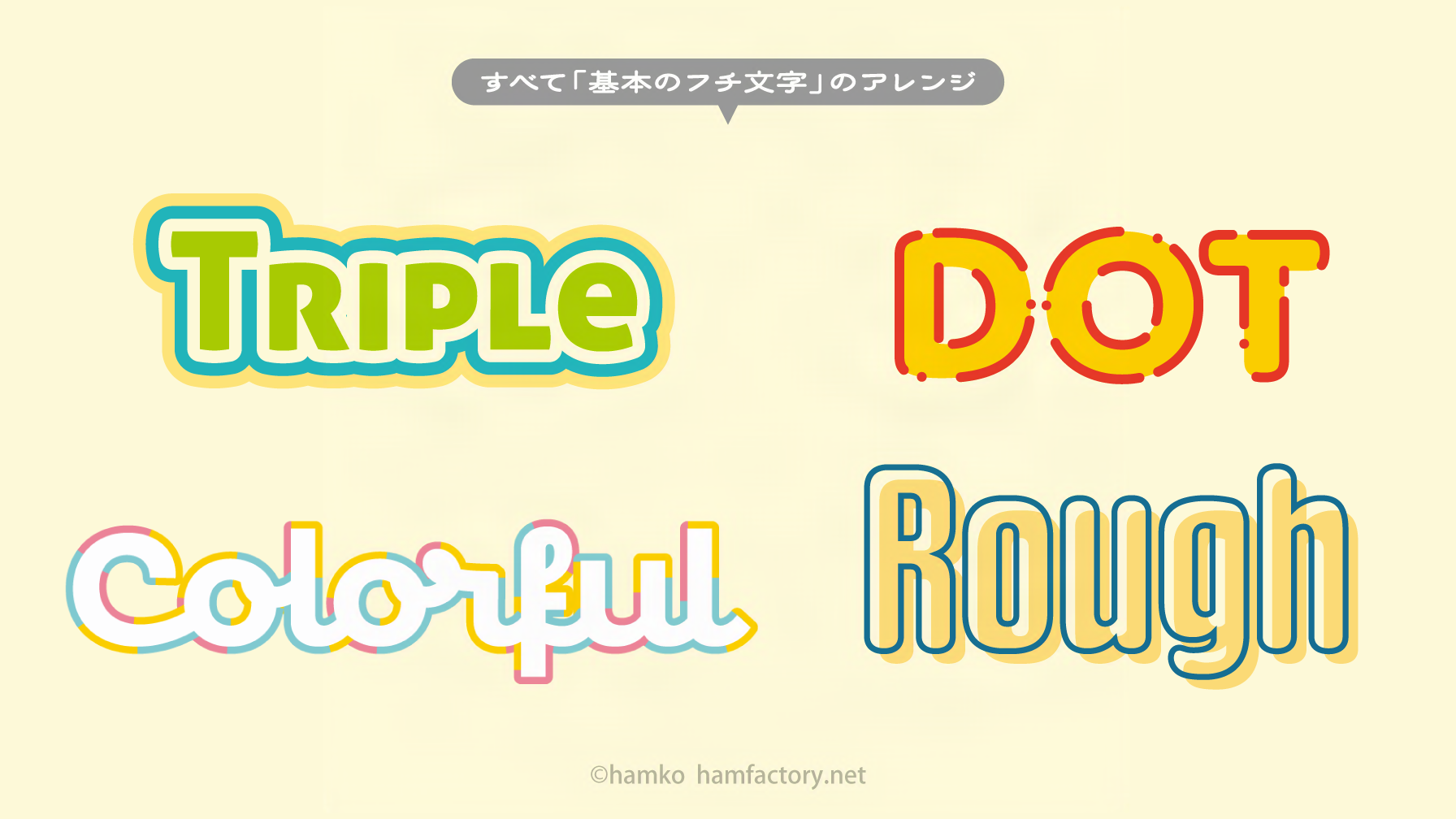 過去に出演したCC道場でも扱っていますので、音声による解説も聞きたい方はこちらをご活用下さい。(基本のフチ文字の解説は15:44〜)